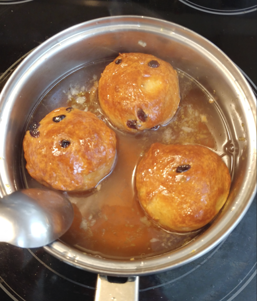 An Easter classic, the rum baba makes a delicious treat. It is a bit intensive and messy but well worth the effort. One key factor is the raisins themselves have to be soaked for at least 4 hours as when trailed at shorter intervals they weren’t retaining any of the flavor. Additionally the soaking liquid has to be applied hot and can quite literally be squeezed into the cakes.