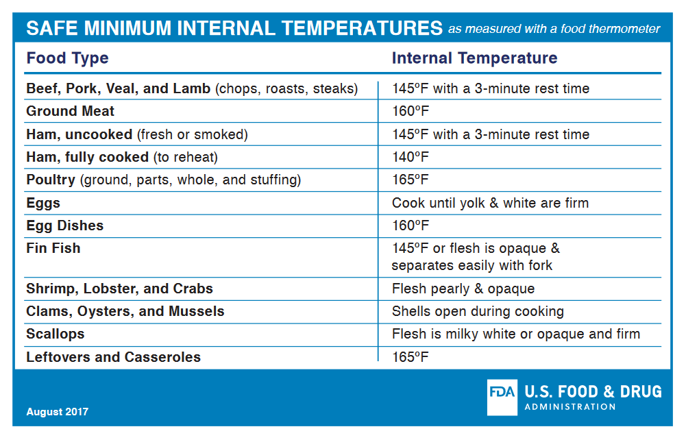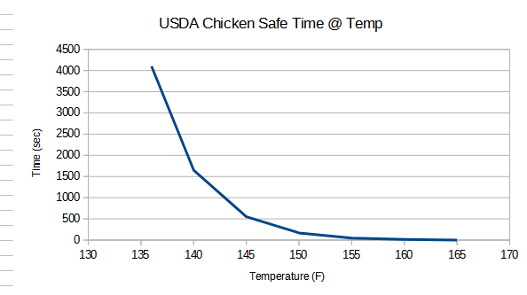 Microbes aren’t smart. They don’t sit around waiting for the 165F safe internal temperature for chicken (as deemed by the FDA below) and die. The 165F chosen by the FDA is based on a bit of science and statistics and by using the same tricks you can actually go lower.