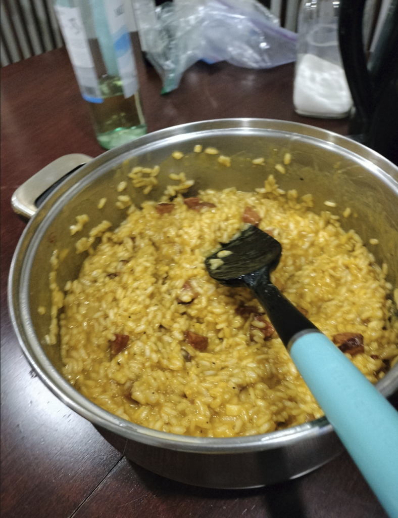 A classic feel good food especially this time of year. With cheap squash from the farmers market it was easy to roast and puree it. Risotto was made traditionally with a the butternut squash puree added in the later stages. Additionally I added fried polish sausage that pairs very well with the hearty dish.