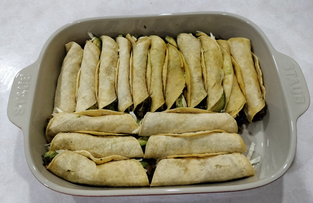 I got a new Staub baking dish for Christmas and it was finally time to break it in with no other dish than enchiladas.