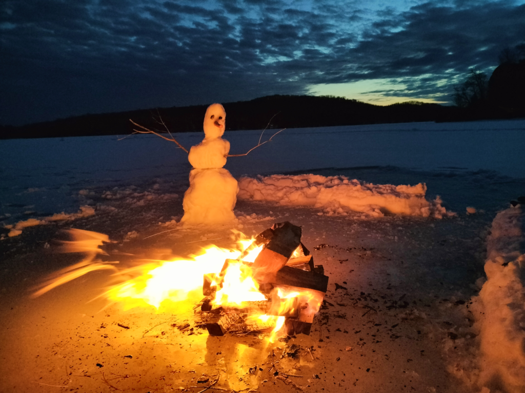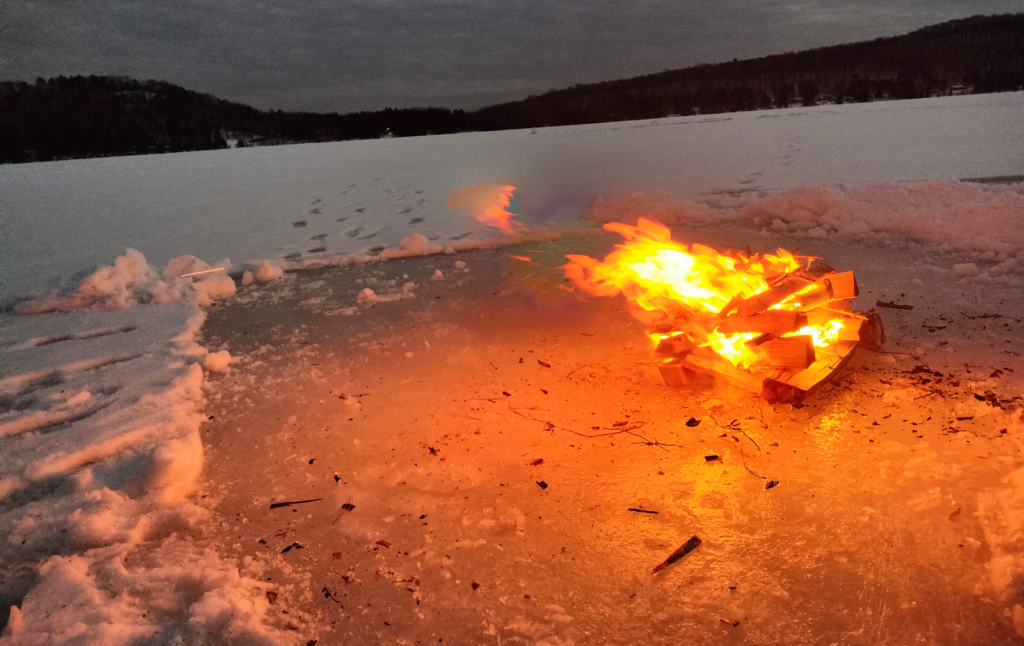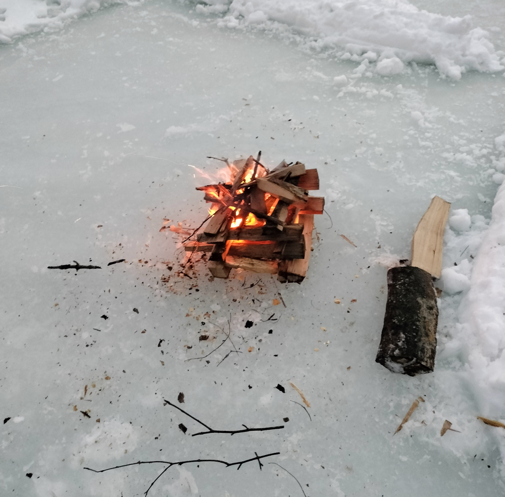 A seemingly impossible feat, building and maintaining a campfire in the middle of a lake is not overly complex (as long as its frozen).