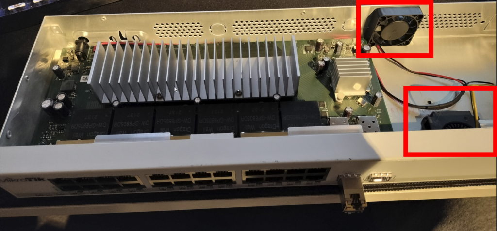 Lastly for my switch I have a Mikrotik CSS326-24G-2S+ which has 2 SFP+ ports that can handle 10Gbps which I use for my server and workstation. For the server I use a cat 6 patch cable and for my workstation I use a fibre optic cable as cat 6 can’t handle the distance. The remaining 24 1Gbps ports are used for various devices.